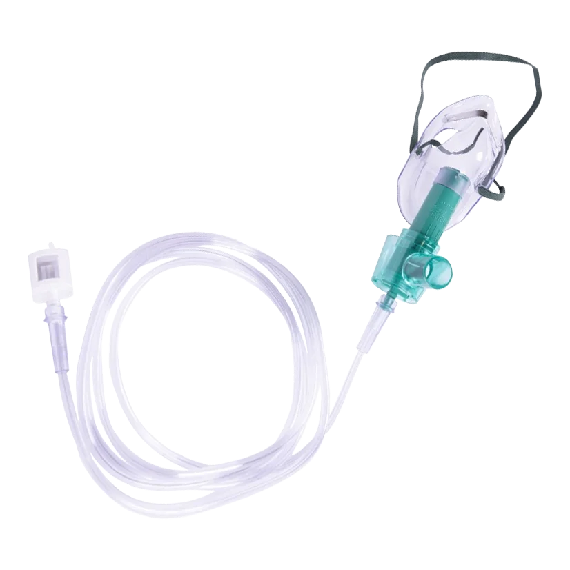 La mascarilla Venturi está fabricada en PVC de grado médico atóxico, anatómico y muy confortable que permite una perfecta adaptación a la cara del paciente sin producir roces ni traumatismos. Incorpora clip nasal metálico, tubo estriado de 2 mt. totalmente transparente con estructura interior anticolapso y terminal estándar.