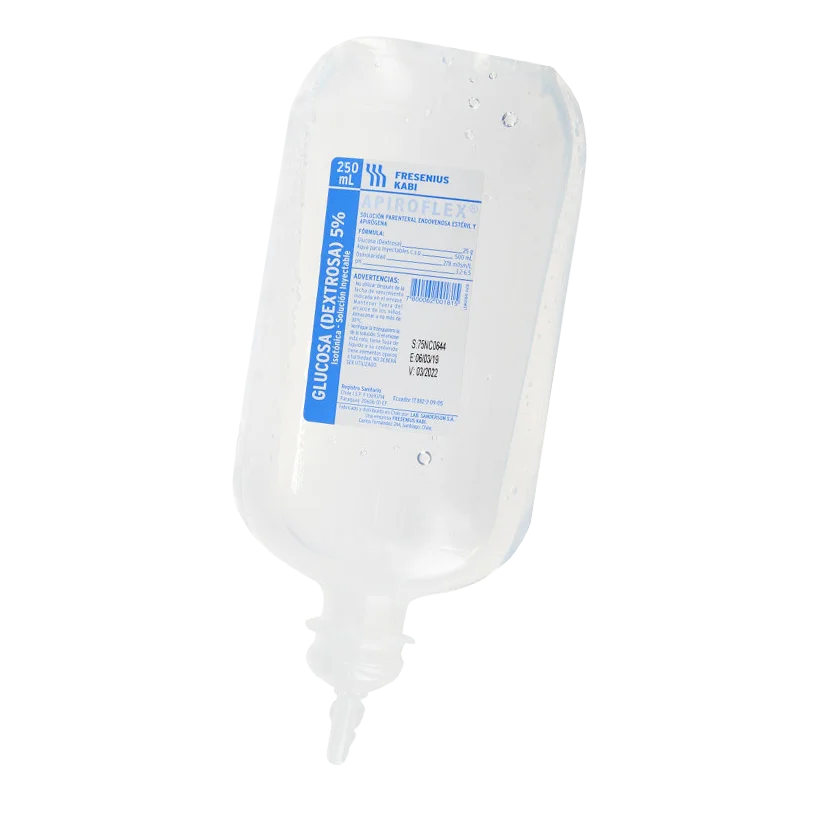 Las soluciones inyectables de glucosa a una concentración del 5% están indicadas como fuente de agua, calorías y diuresis osmótica, en casos de deshidratación, reemplazo calórico, en hipoglucemia y como vehículo para diluir medicamentos compatibles.