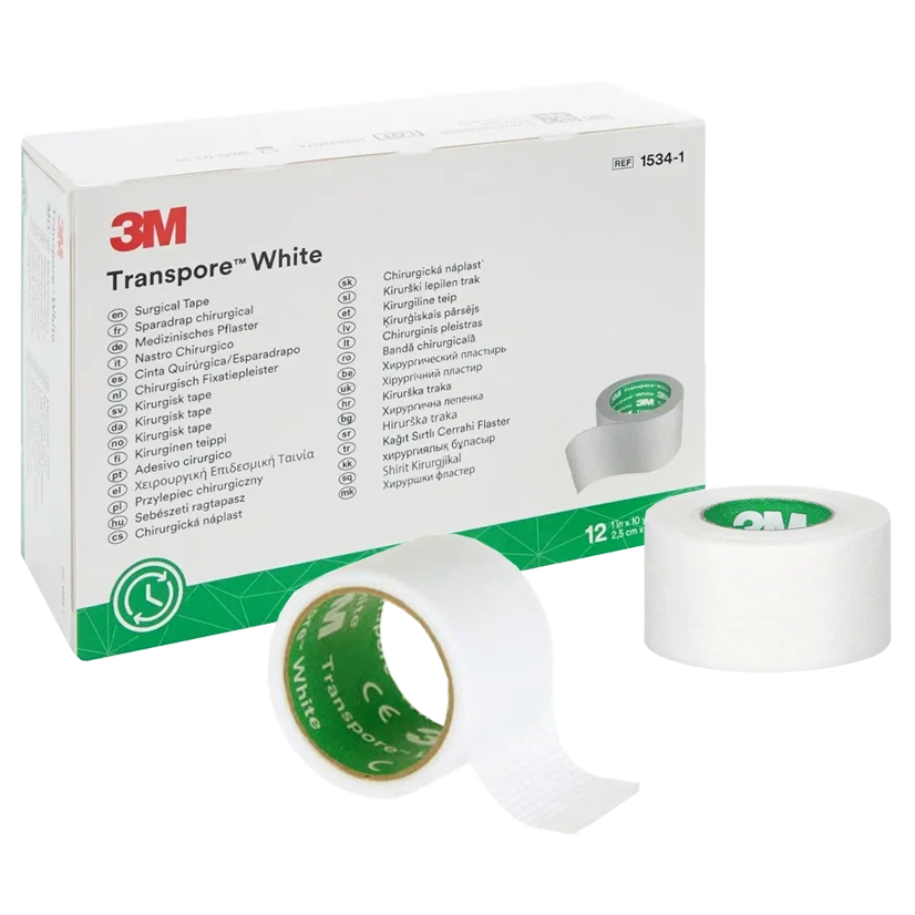 La tela adhesiva Transpore™ White 3M® es una cinta adhesiva hipoalergénica que está diseñada para ser gentil con la piel, lo que la hace ideal para personas con piel frágil o en riesgo de lesiones. Asegura vendajes con la mayor suavidad y resistencia posible.