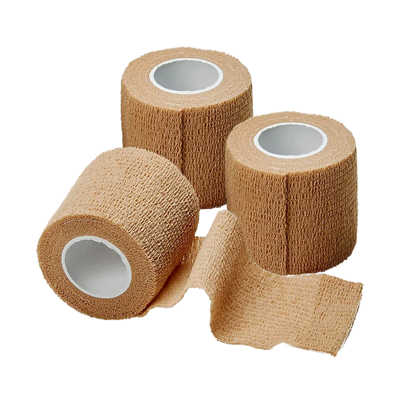 La venda porosa adhesiva Coban es una cinta elástica autoadhesiva, se pega solo sobre sí misma y no sobre la piel, permitiendo además que los médicos la rasguen con la mano.